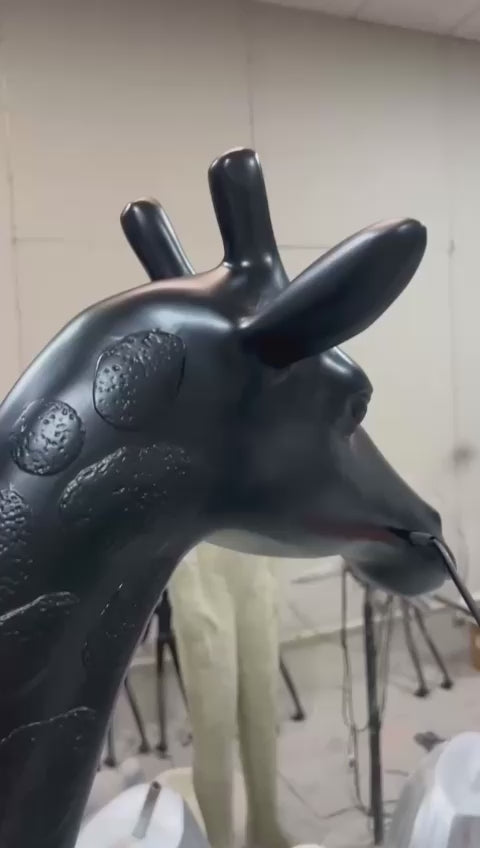 This black giraffe sculpture lamp combines artistic design with elegant lighting. Made from lightweight, durable polyethylene, the giraffe holds a K9 crystal chandelier with six E14 bulbs, providing 980 lumens of warm, bright light. Available in multiple sizes, it suits both bold interiors and upscale commercial spaces, serving as a striking centerpiece.