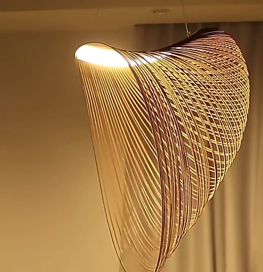 The Illan Pendant Lamp is crafted from high-quality, paper-thin, flexible plywood.